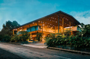 Dengan ciri khas bangunan modern rumah kaca dan kaktus di depannya, di dalamnya terdapat area outdoor yang super teduh.