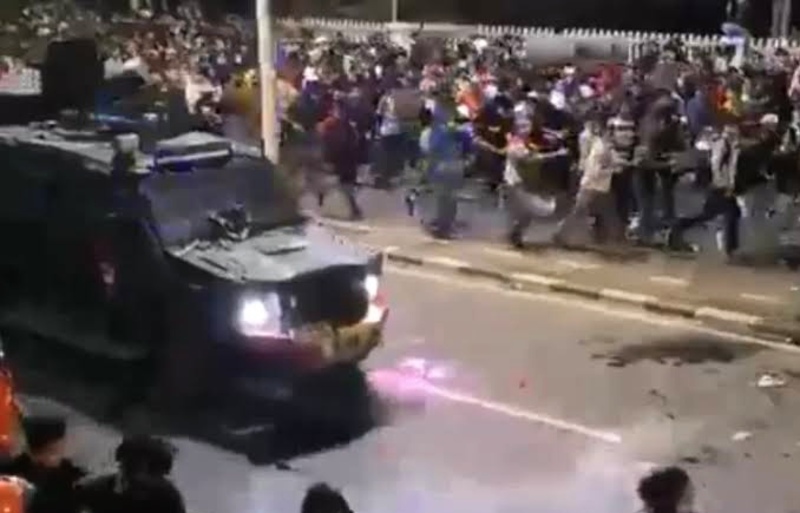 Rekaman video yang beredar cepat di media sosial memperlihatkan rantis melaju kencang di tengah kerumunan massa, sebelum menabrak dan melindas korban.