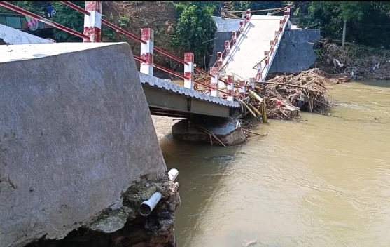 INFOLADISHA – Jembatan penghubung antar kampung di Desa Gobang, Kecamatan Rumpin, Kabupaten Bogor yang ambruk dua bulan setelah diresmikan hingga kini belum masuk tahap penanganan.