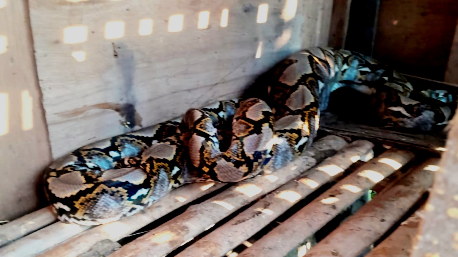 Nuryadi pemilik kandang mengatakan, dirinya dibuat kaget dan panik dengan keberadaan hewan melata tersebut saat akan memberi makan unggas peliharaannya.