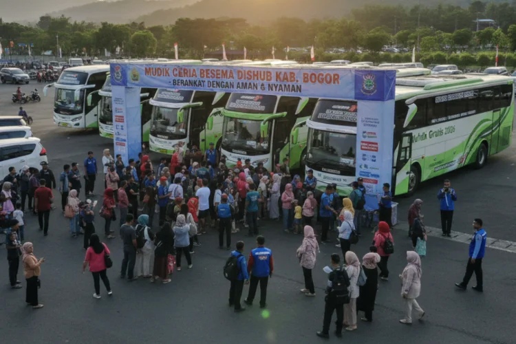 INFOLADISHA – Ribuan warga memadati kawasan Stadion Gelora Pakansari, Kabupaten Bogor, sejak Rabu pagi, 18 Maret 2026, untuk mengikuti program mudik gratis yang digelar pemerintah daerah.