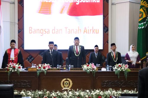Rudy Susmanto bersama 54 Anggota DPRD Kabupaten Bogor 2024-2029 sebelumnya telah dilantik di Ruang Sidang Paripurna DPRD Kabupaten Bogor, Selasa 27 Agustus 2024.