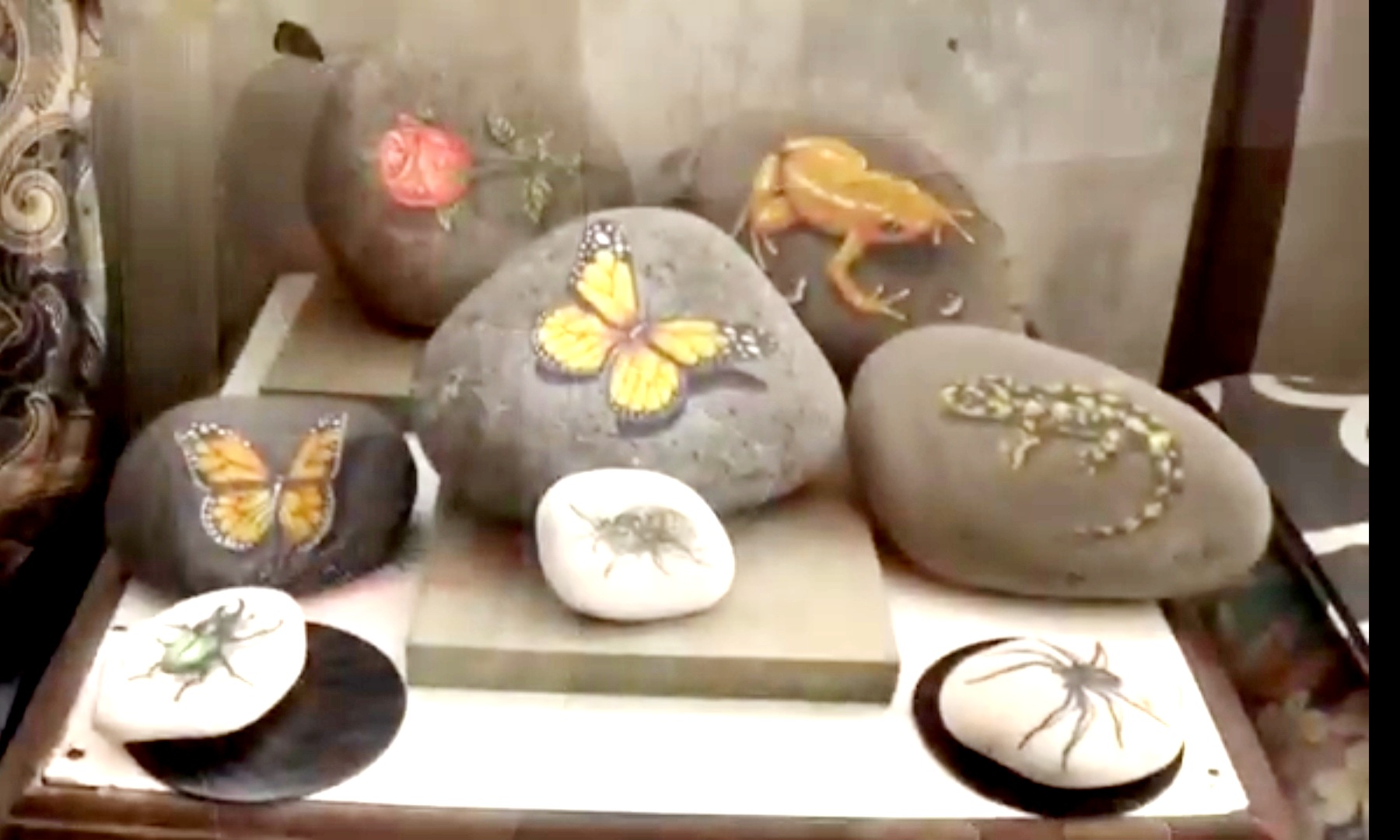 Meski bukan hal yang baru, namun batu kali yang dia pungut dari kali Ciliwung disulapnya menjadi sebuah karya kerajinan yang cantik.